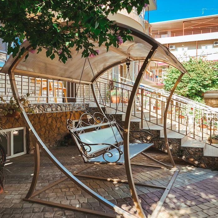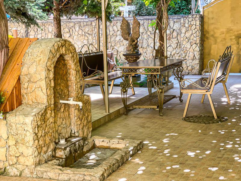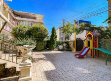 «Костас» находится в курортной зоне, в 800 метрах от оборудованного песчаного пляжа. Большой и просторный двор гостевого дома «Костас» утопает в зелени, которая создает естественную тень и прохладу жарким летним днем. Двор оборудован цветниками и уютными беседками для комфортного отдыха и приготовления шашлыка. Так же для маленьких гостей двор оборудован современной детской площадкой.