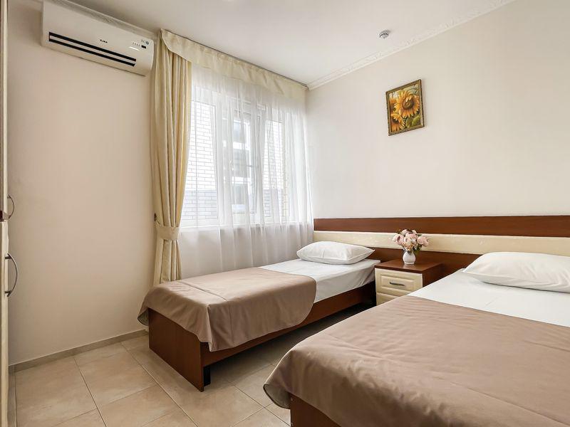 В шаговой доступности – центр развлечений Витязево – бульвар «Параллия». Здесь расположены многочисленные кафе и рестораны, а также фруктовые рынки, винные магазинчики, боулинг-центр, Луна-парк. Дети до 4,99 лет размещаются без места при условии всех занятых основных мест.