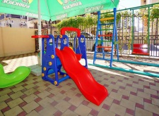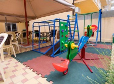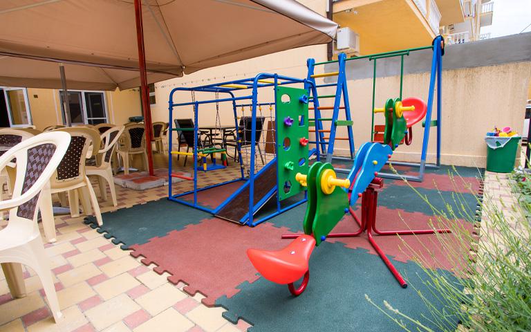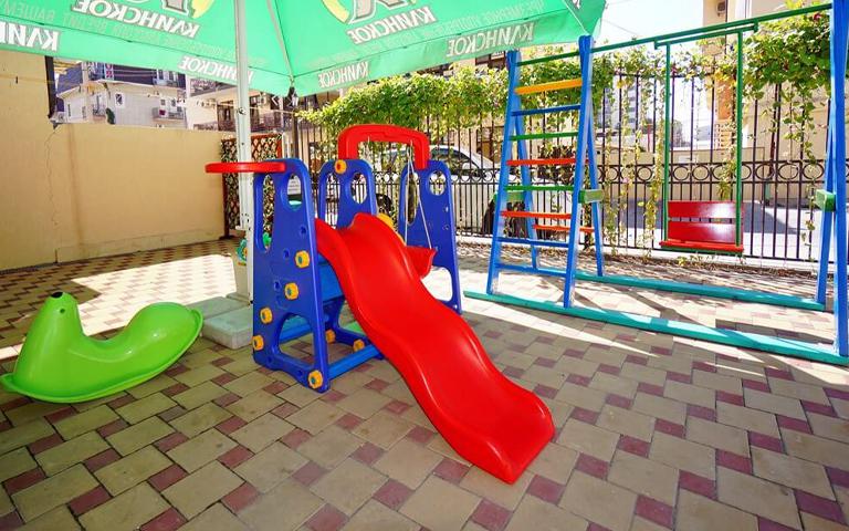Гостевой дом принимает на отдых детей всех возрастов, предоставляет детские кроватки, стульчики, коляски. На территории для маленьких гостей есть детская площадка с качелями и небольшой горкой.