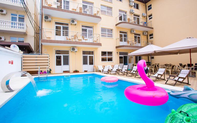 Лето в Витязево очень жаркое! Купаться хочется сутки напролет, поэтому собственный бассейн незаменим. В ГД "Волга" есть бассейн, который Вы оцените по достоинству. Возле бассейна расположена зона для загара с удобными шезлонгами, с которых хорошо наблюдать как ваши дети резвятся в бассейне.