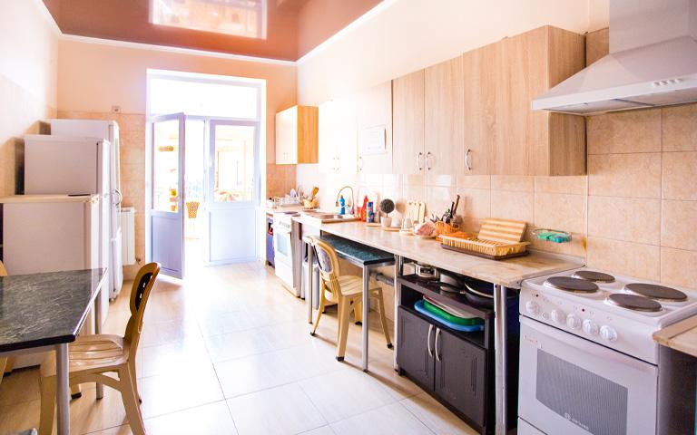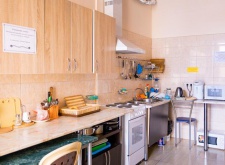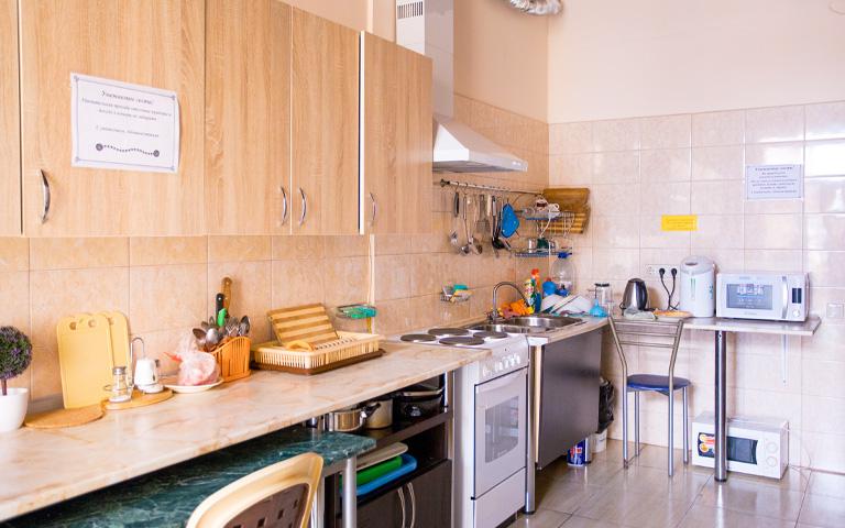 Питание в ГД самостоятельное: для приготовления пищи оборудована современная кухня, оснащенная всем необходимым: имеется две электрические плиты, микроволновая печь, термопот, чайники, набор посуды.